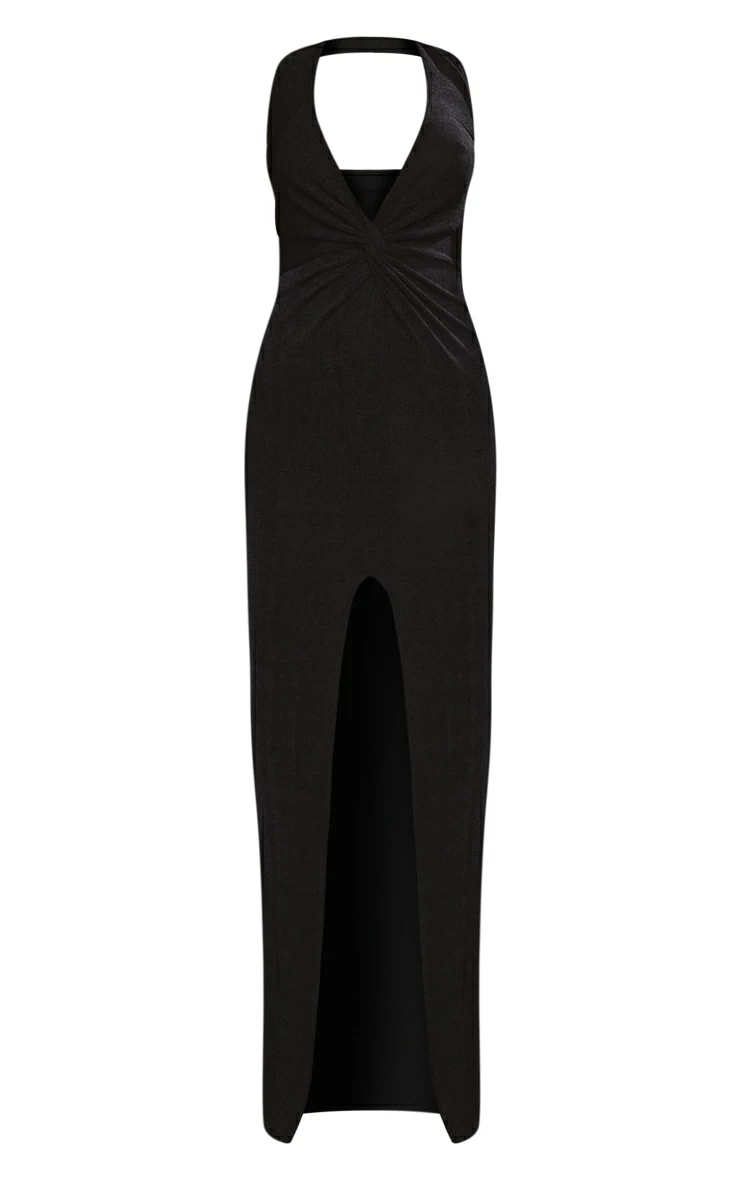 Get ready to look all kinds of glam in this maxi dress. Featuring a black acetate slinky material with a twist detail and a maxi length. Pair with slip-on heels and minimal accessories for the perfect occasion-ready fit.