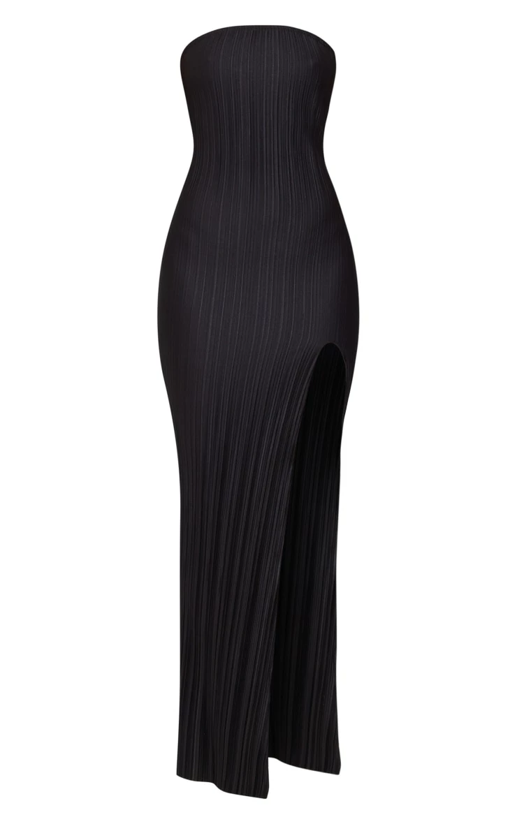 Your special occasion look is finally sorted with this dress doll. Featuring a black plisse material with a split leg and maxi length, we’re in love. Wear with high heels and a gold clutch bag for a look we can’t get enough of.