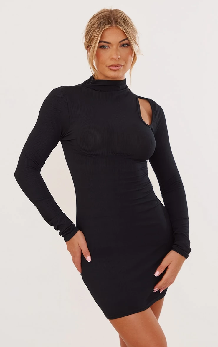 Your off-duty days have never looked so good until this bodycon dress doll. Featuring a black rib material with a cutout detail and long sleeves, we’re obsessed. Simply style it with blazer and fresh kicks for a dressed up vibe.