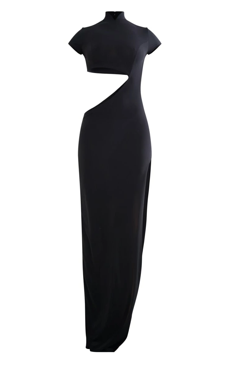 Got a special occasion penciled into your diary? Well we’ve got you covered with this black slinky cut out short sleeve maxi dress. Brought to you in a black slinky material with a cut-out side, short sleeves and a maxi length, what more could you want? This statement dress will have heads turn for all the right reasons doll. Simply style with your high heels and accessories for a next-level look.