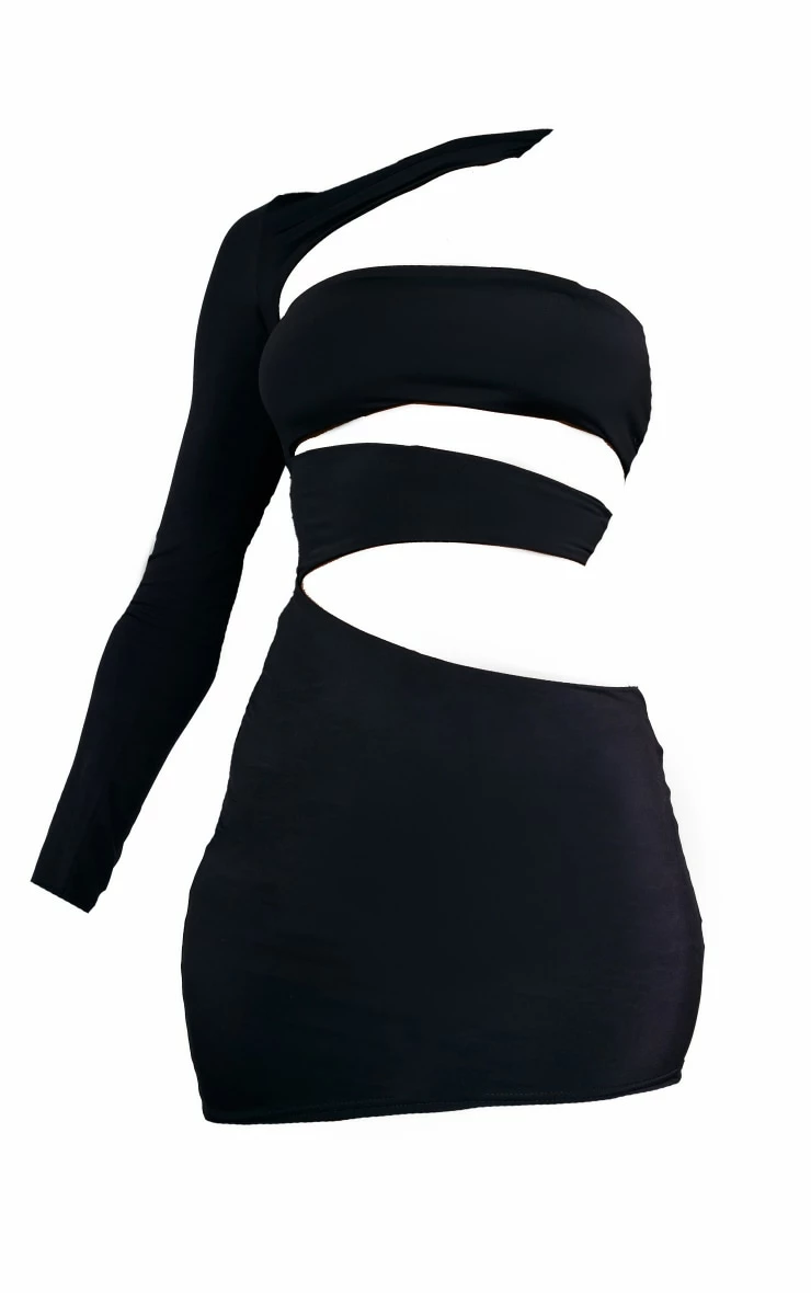 This black slinky one shoulder multi cut out bodycon dress is at the top of our new season wish list. With a black slinky material and a one shoulder design, we are obsessed. This dress is prefect for your weekend plans. With a bodycon fit, you will be showing off your shape in all the right places. Team with some if your fave heels and some gold hoops to finish off the look.