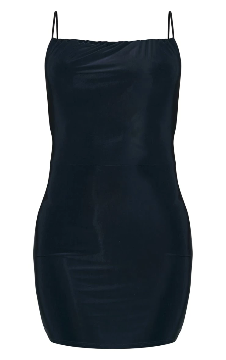 Simple but chic is key for the new season and this black slinky ruched strap detail bodycon dress is just what you need. Made from a black slinky material with ruched straps and a figure-hugging fit, what more could you ask for? This bodycon dress is sure to turn up the heat whatever your plans for the weekend might be. Add some bold hue strappy heels, gold accessories and a mini bag for a flawless finish.