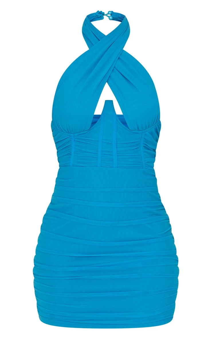 Hit refresh on your weekend wardrobe this season with this dress doll. Featuring a blue mesh material with a halterneck design and underbust corset detail, we’re obsessed. Wear with heeled mules and simple accessories for a date with the dolls.