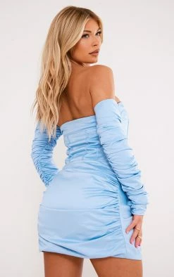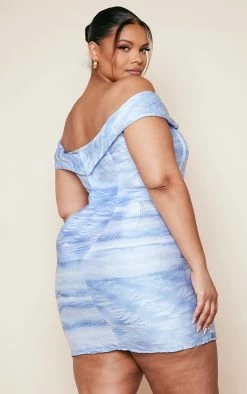 Pink Tie Dye Print Satin Ruched Side Frill Hem Bodycon Dress
