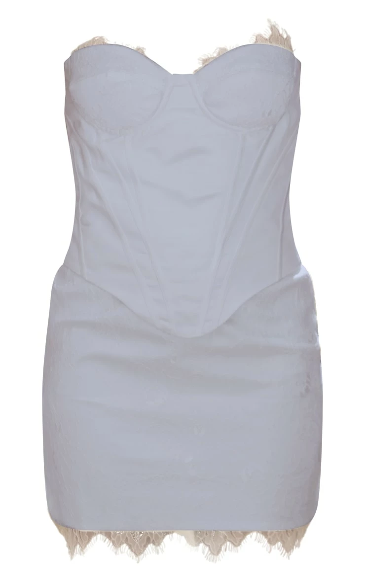 Get ready to have all eyes on you with this bridal white lace corset bandeau bodycon dress. This dreamy dress is brought to you in a white material with a lace corset design, a bandeau style and a figure-hugging fit, what more could you want on you special day? Team this must-have bodycon dress with your trusty high heels and accessories for a glam finish.