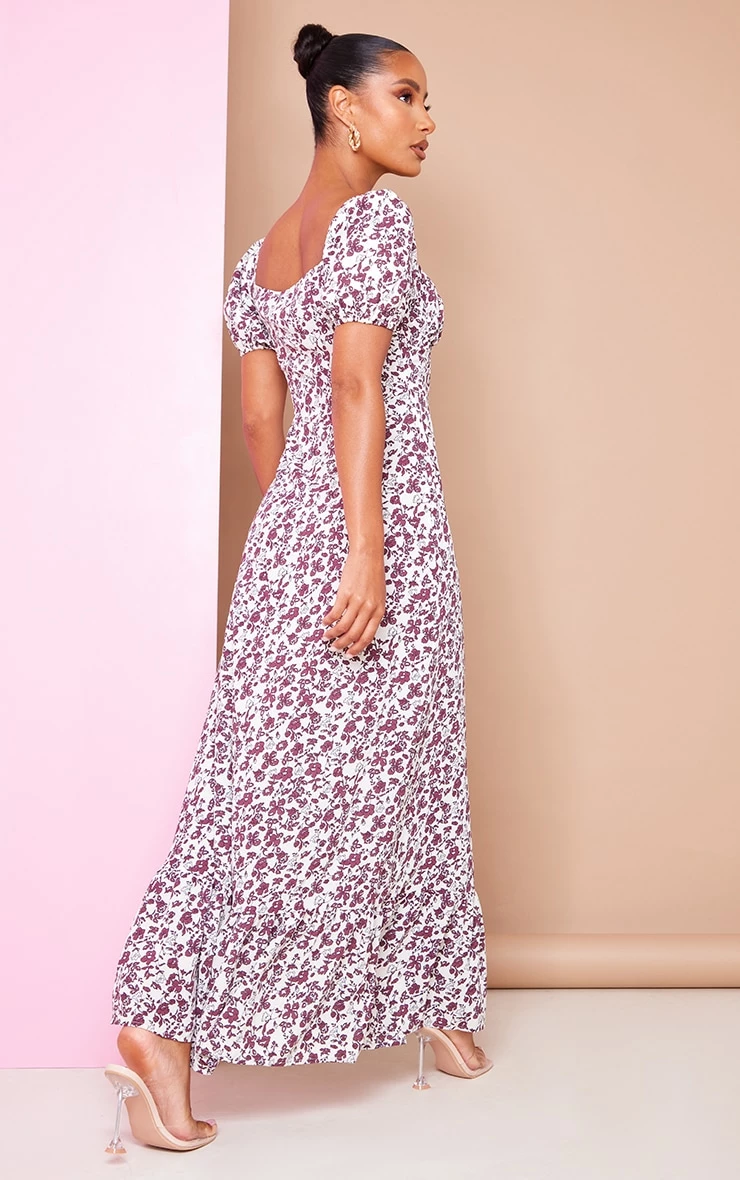 Channel all the summery feels with this brown floral print corset puff sleeve midaxi dress. This women’s midaxi dress is brought to you in a brown floral print material with a corset design, puff sleeves and a floor-sweeping midaxi length, what more could you want? You” be sure to earn all the likes in this statement women’s midaxi dress. Pair with your clear high heels and white bag for a look that we can’t stop loving.