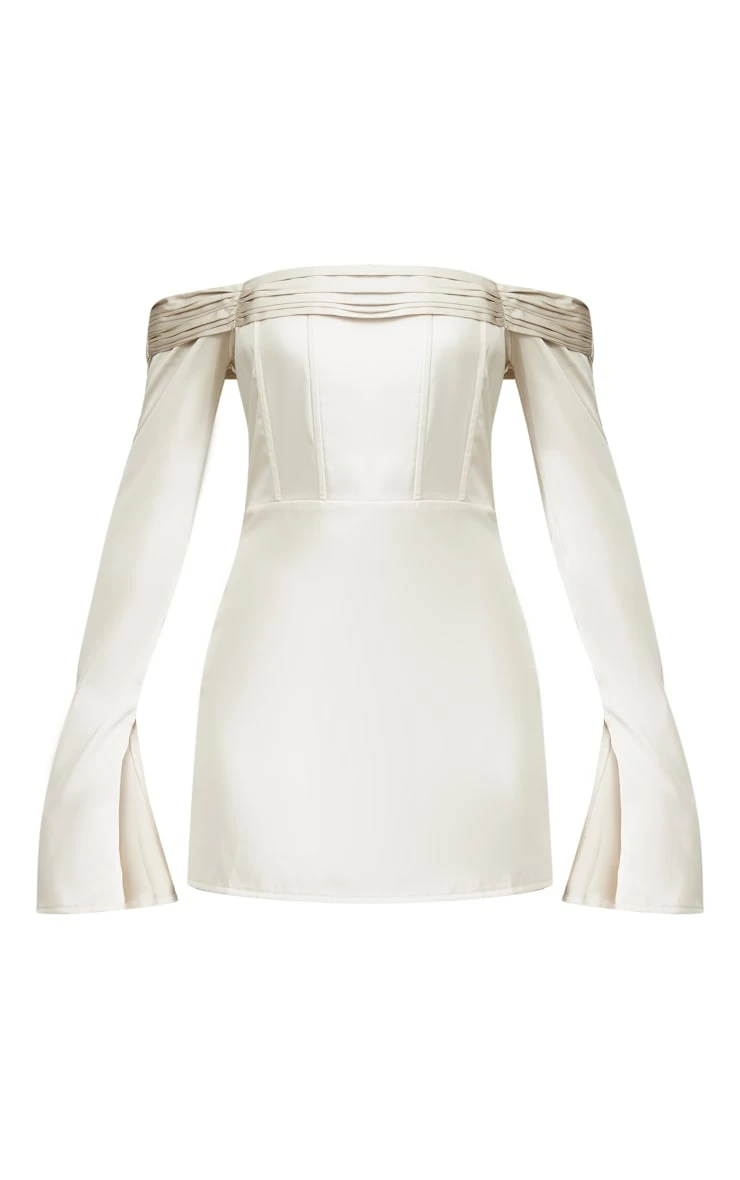 This champagne satin pleat detail bardot flared sleeve shift dress is a must-have for your weekend wardrobe doll. This dress features a champagne satin material that will add all the luxe feels to your evening attire. With a bardot design, show off your shape with this figure-flattering fit. Style with some of your staple clear heels and gold accessories for a chic look we are loving.