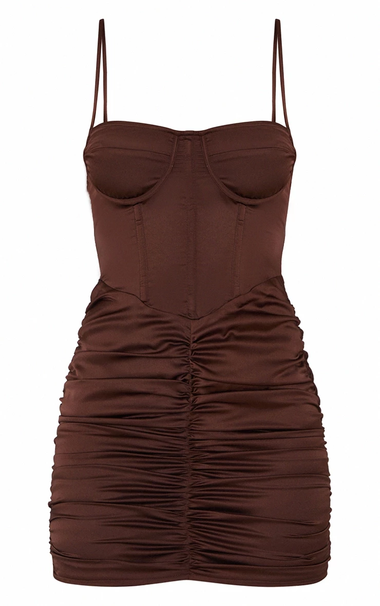 We are obsessing over this silky satin dress for your new season wardrobe doll, if you’re a fan of going out-out this is the dress for you. Featuring a chocolate satin material with a corset design and ruched skirt detailing in a mini style, we’re in love with this one. A corset dress is a go-to style you need in your wardrobe, just style with tie-up heels and chunky gold accessories for a look that will have all eyes on you.