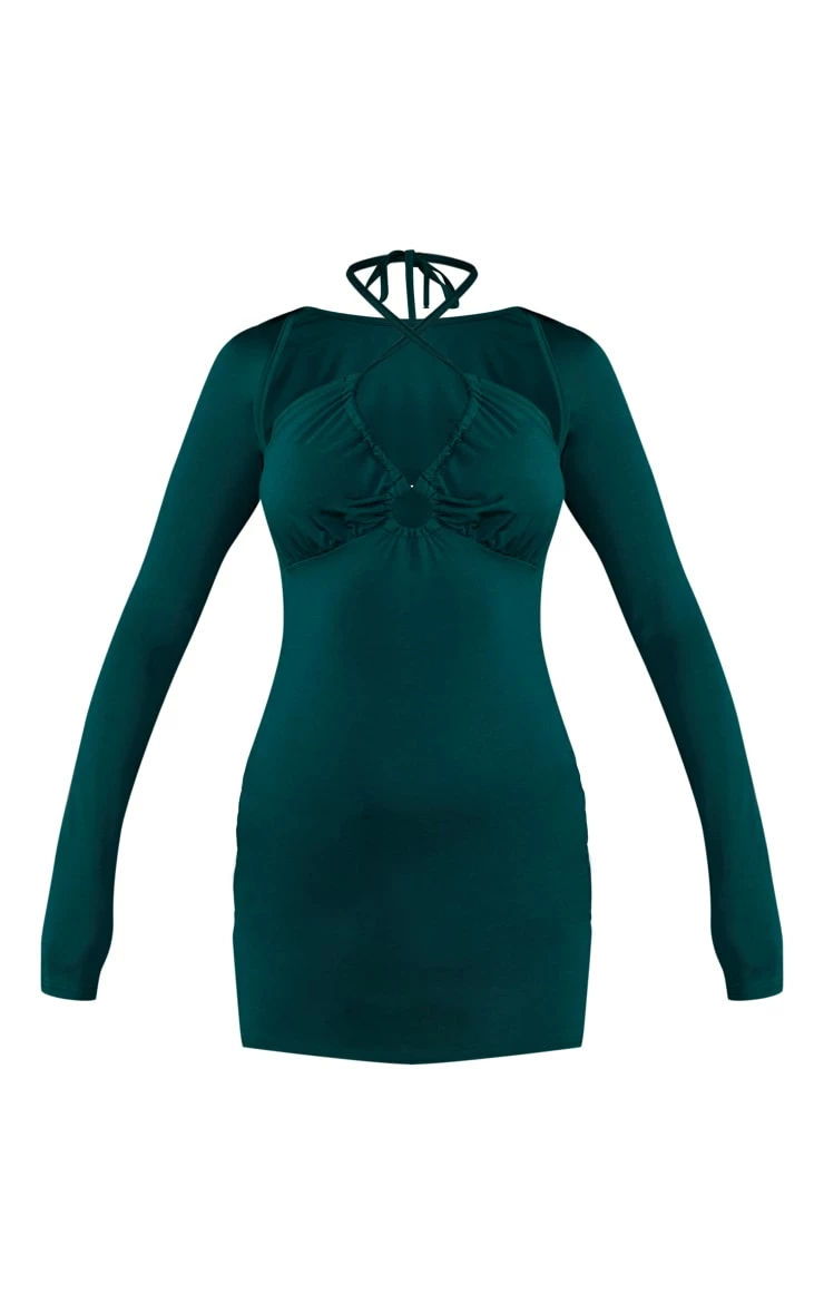 You are sure to steal all the stares with this bodycon dress. Featuring an emerald green slinky material with a trim detail, long sleeves and a figure-worshipping fit, we are in love. Team with high heels, accessories and a mini bag for a weekend worthy combo.