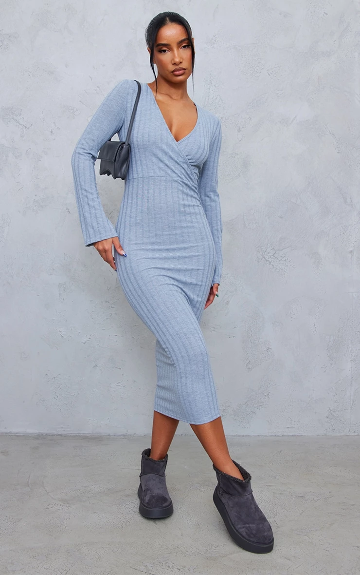 Switch up your off-duty style with this grey rib wrap midi dress with flared cuff. Its grey rib material is super comfy and cosy whilst its wrap design is seriously flattering. This midi dress is a must-have for those shopping dates with the dolls or a dreamy ‘fit for running errands. We are loving this paired with comfy boots, a shoulder bag and staple gold accessories for a flawless finish.