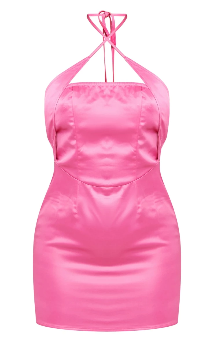Make a statement in this hot pink satin cross neck detail bodycon dress. This dress is brought to you in a hot pink satin material for a touch of luxe. With a cross neck detail and a bodycon fit, what more could you want doll? Whether you have brunch plans with the dolls or date night with your significant other, you will be turning heads. Team with some of your highest heels and a pair of gold hoops to elevate the look even further.