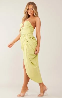 Add a little drama to your wardrobe with this lime underwired ruched drape midi dress. This midi dress is brought to you in a lime material and an underwired design, what more could you want? Its ruched detailing will have you tapping into your glam side. Style with some clear heels and a pair of gold hoops to finish off the look.
