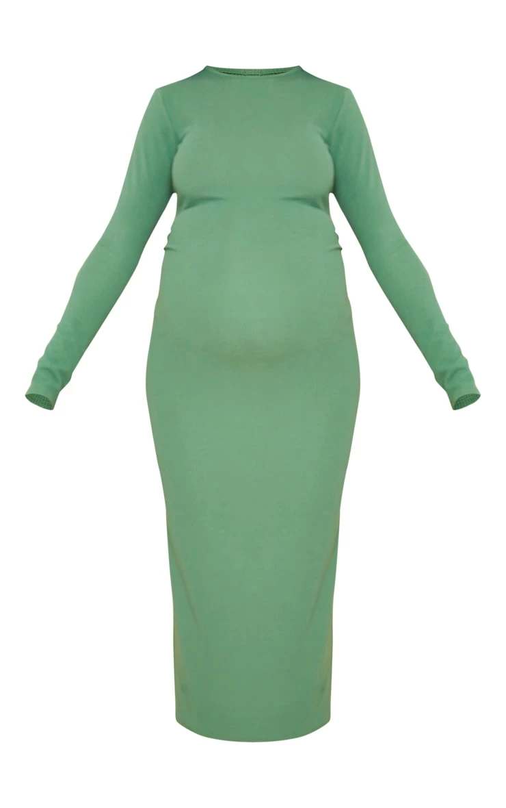 Show off your bump in this figure-hugging dress doll. Featuring an olive ribbed material with long sleeves and a midi length, we’re in love. Style with chunky kicks and a shoulder bag for a simply yet chic finish.