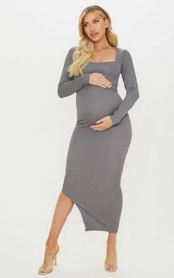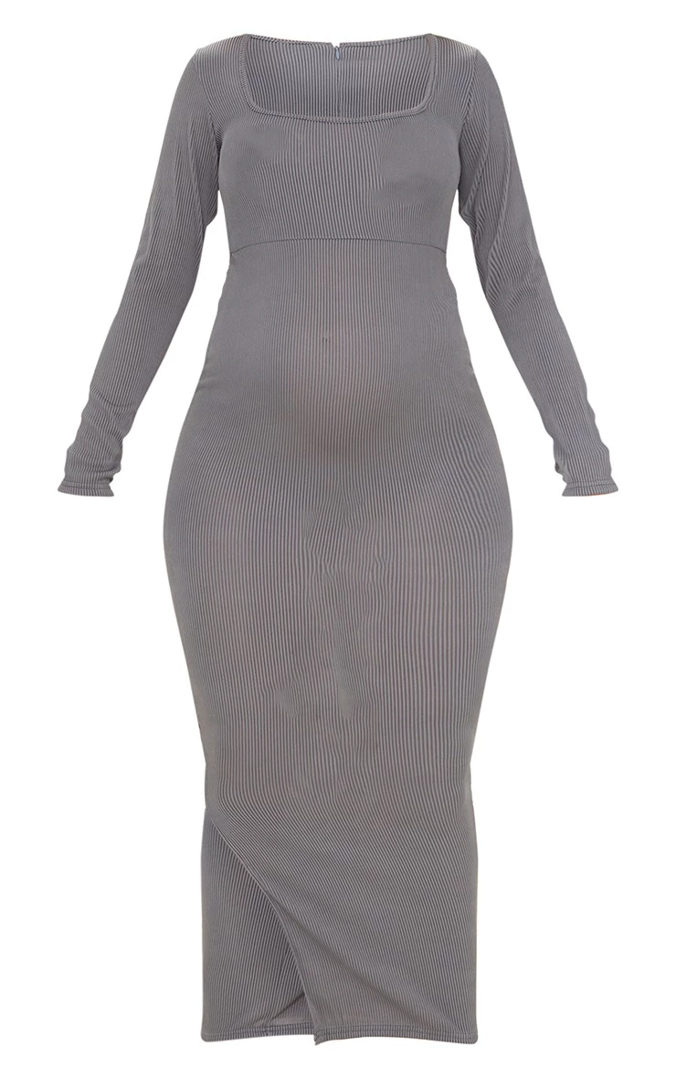 Doll we are obsessing over this dress your new season look. Featuring a slate ribbed material with long sleeves and a side split. Style with barely-there heels and gold accessories for a chic finish.