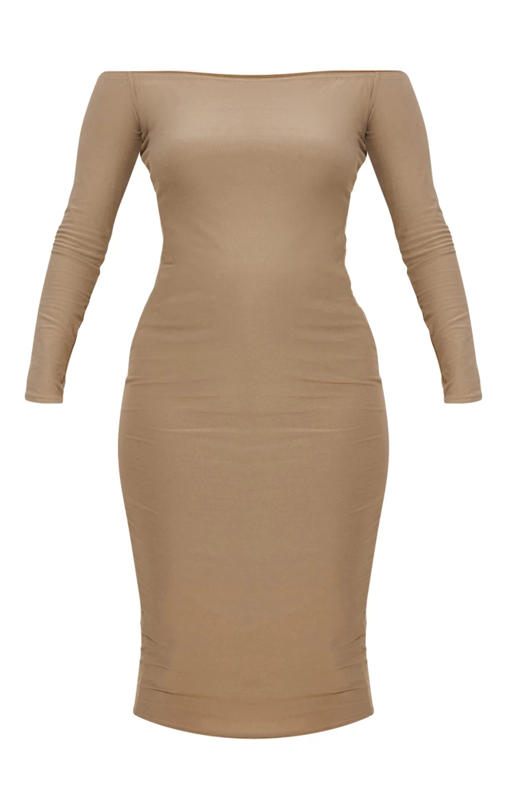Make them stop and stare in this maternity taupe off the shoulder soft touch midi dress. This dress is brought to you in a taupe soft touch material that will have you feeling luxe this season. With an off the shoulder design and a midi length, you wont be able to resist doll. This dress is perfect for those plans with the dolls. Why not team with some clear heels and your fave accessories to feel confident this season.