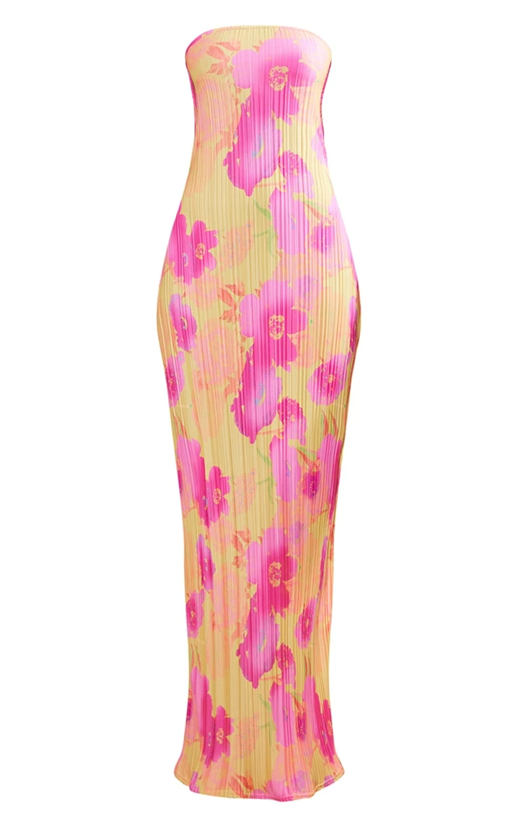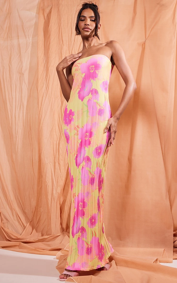This multi floral print plisse bandeau cowl back maxi dress is a must have in your new season wardrobe. This unreal dress is made from a plisse material with a multi floral print that will have you standing out from the rest. With a cowl back design, this maxi dress is perfect for those important evens. Style with some of your highest heels and your fave gold hoops to complete the look we are loving.