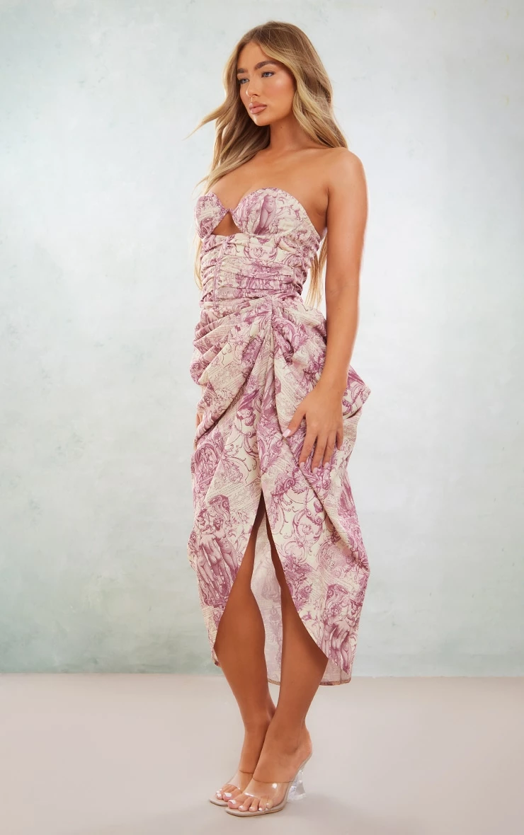 Be sure to have all eyes looking your way in this multi renaissance print underwired ruched drape midi dress. Brough tot you in a multi hue material with a renaissance print, a flattering underwired design and ruched drape detailing for that extra touch of glam, we just can’t get enough. Style this midi dress with clear strap heels and statement accessories for an occasion look to be remembered doll.