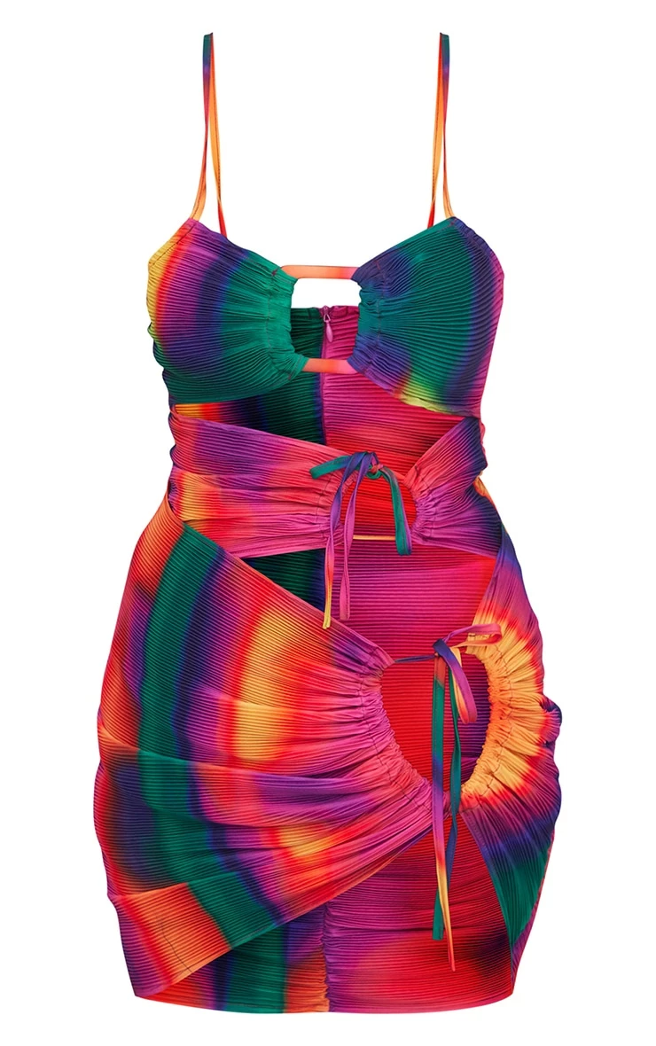 Get ready to turn heads in this statement bodycon dress. Featuring a multi hue plisse material with a tie dye print, a cut out design and buckle detailing, we’re obsessed. Just add heels and luxe accessories for a weekend-worthy fit.