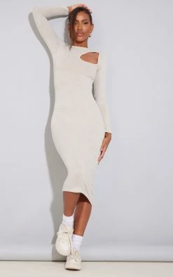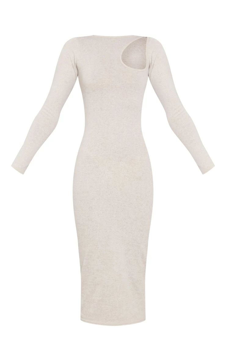 Add a little edge to your off-duty wardrobe with this dress. Featuring an oatmeal brushed material with a jersey cut-out design and a midaxi length. Simply style with some chunky boots and an oversized jacket for a look that will get you noticed.
