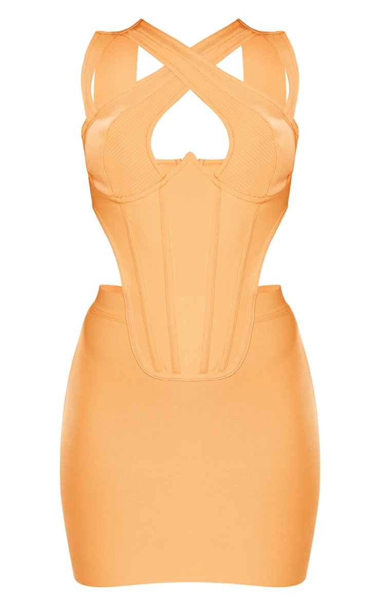 Dare to stand out from the crowd in this orange bandage cross bust corset cut out side bodycon dress, it is a must-have for all your weekend plans. This dress is made using an orange bandage material with a cut out side design and a cross bust style, what’s not to love? Style this dreamy bodycon dress with clear slip-on heels and gold hoop earrings for a statement look that everyone will be obsessing over.