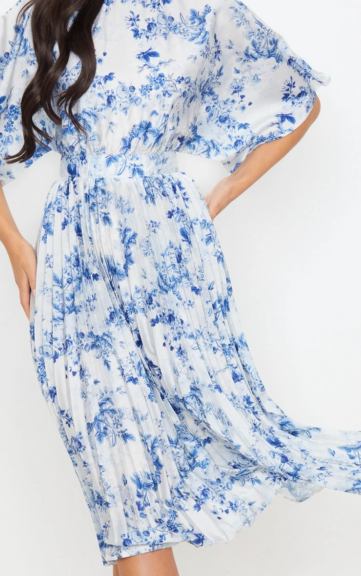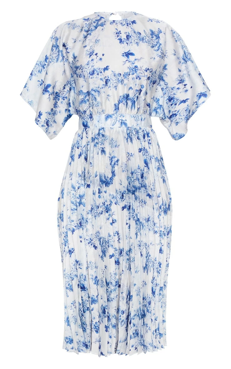 This dreamy dress is gonna steal all of the stares at that upcoming special occasion. Featuring a baby blue printed material with an open back design, zip fastening and a pleated skirt, wear with lace-up heels for a look we are loving.