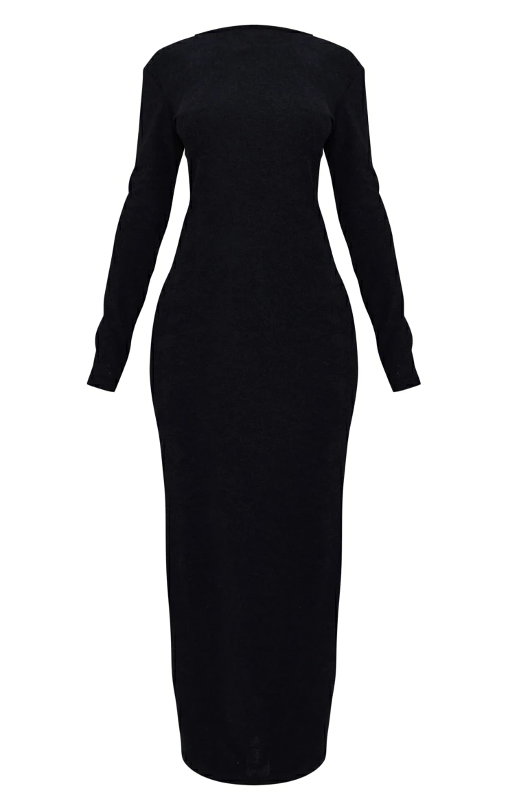 Get that effortlessly chic vibe on-point with this dress. Featuring a black towelled material with a maxi length and a figure hugging fit. Team with some slip on heels and a statement bag to complete this chic look everyone will be obsessed with.
