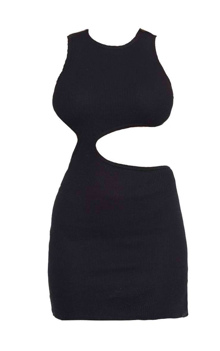 This dress is perfect for those simple styling days doll. Featuring a black waffle material with a cut out design and bodycon fit, what’s not to love? Pair with comfy shoes for the perfect ‘on the go’ look.