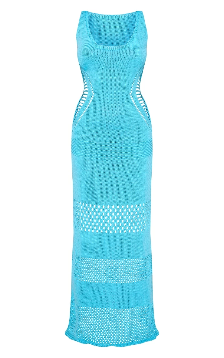 We are in love with bold hues this season doll and this dress is at the top of our wishlist. Featuring a blue crochet material with a plunging neckline and a maxi length, how could you say no? Wear with slides and your g-to accessories to complete the look.