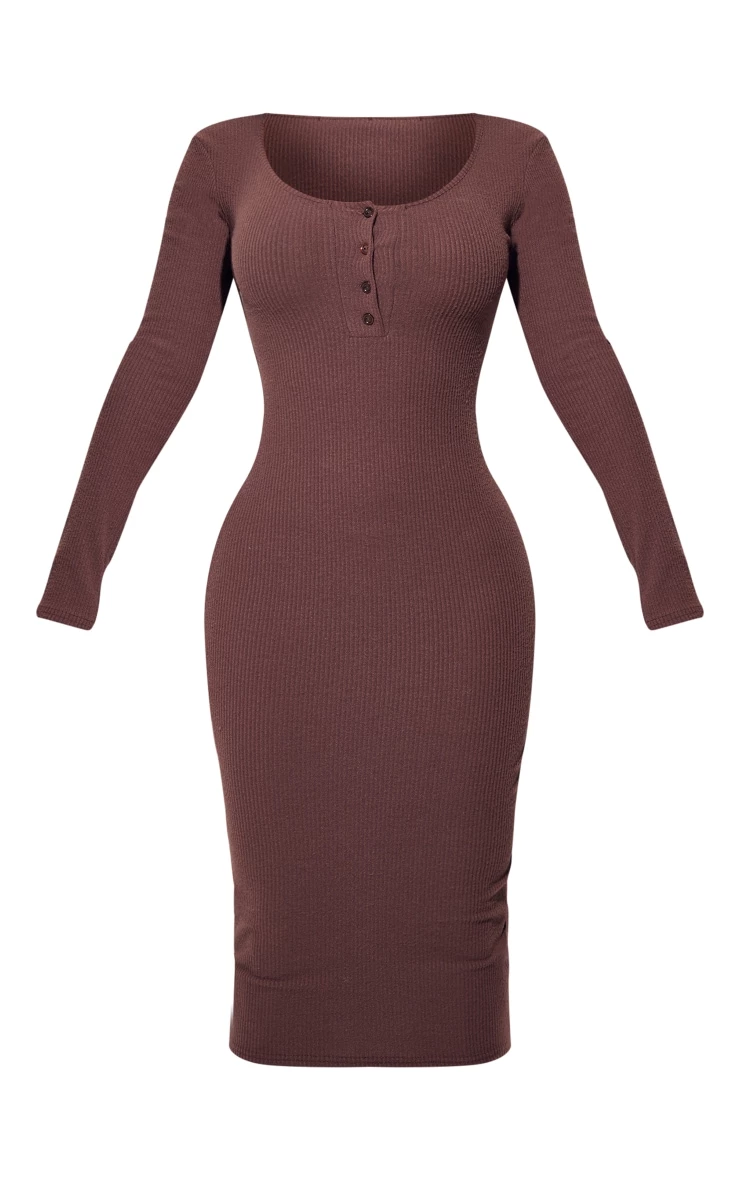 Add some chocolate hues to your wardrobe with this unreal dress doll. Featuring a chocolate brushed material with long sleeves, a button detailing and a bodycon fit, what’s not to love? Simply pair with black boots and a mini bag to bring the whole look together.