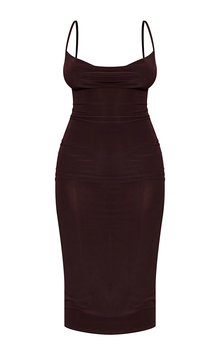 Take your weekend look the extra mile with this must-have midaxi dress doll. Featuring a chocolate slinky material with a cowl neckline and a midaxi length, we’re obsessed. Wear with lace-up heels and gold accessories to complete the look.