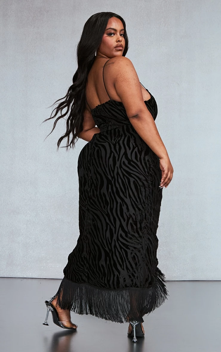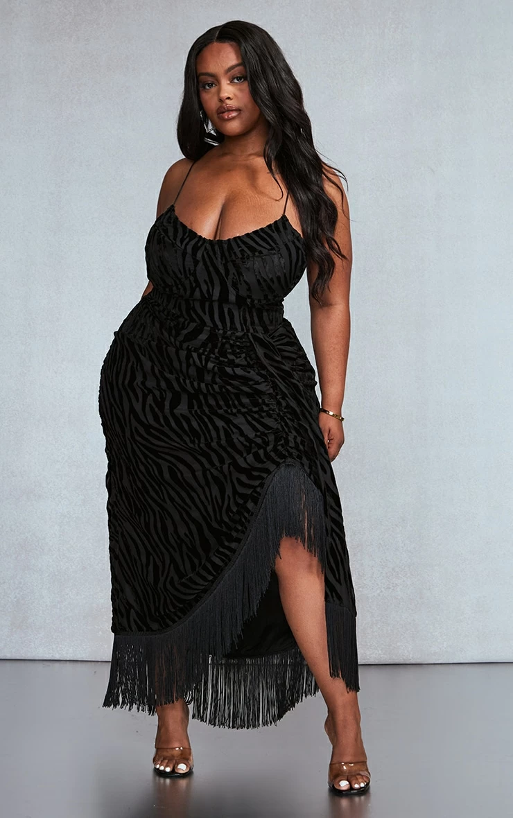 The weekend is here doll and this midi dress is perfect for whatever plans you have. Featuring a black devore material with a split hem and tassel detail. Style it with clear heels and your fave accessories for a night to remember.