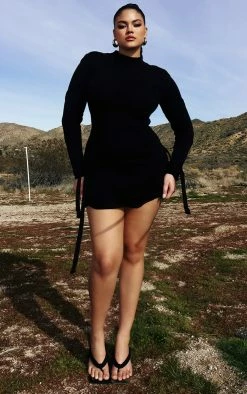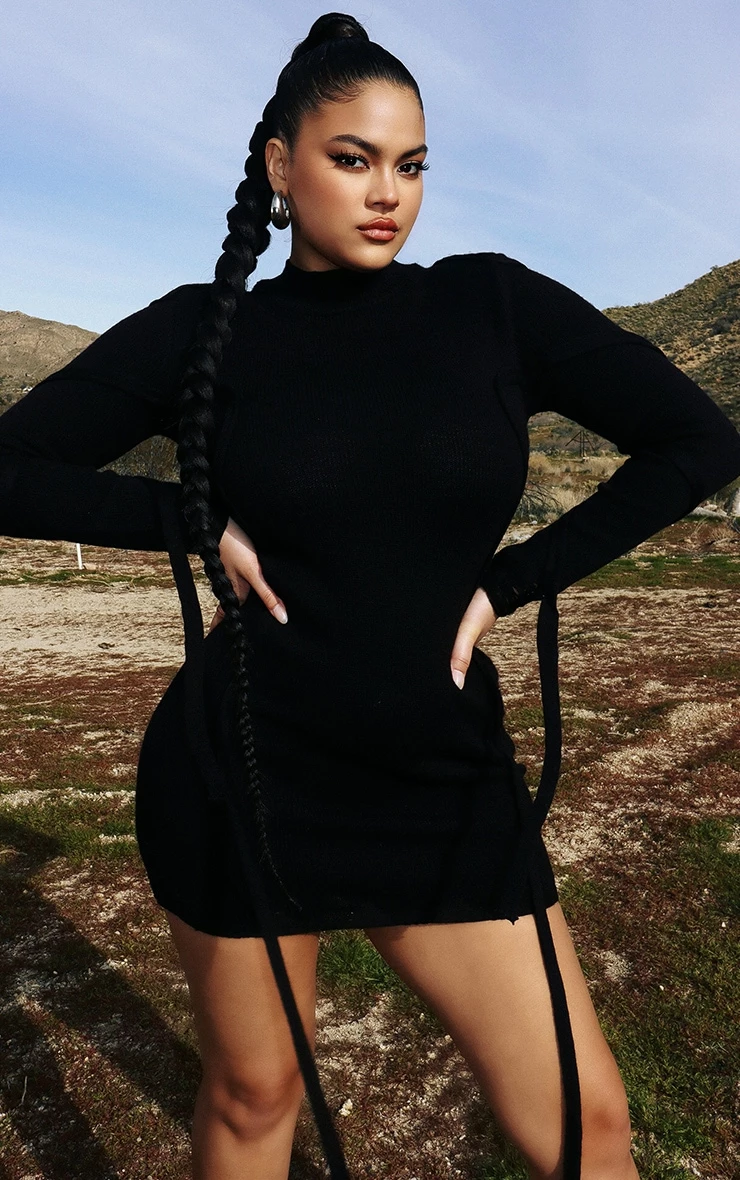 Make a statement this season with this plus black knitted tie detail wrap bodycon dress. This unreal dress is made from a black hue in a knitted material for a chic look you won’t be able to resist. With a tie detail, this dress will have you showing off your shape ion all the right places. Style with some clear heels and your fave accessories to complete the look we are loving.