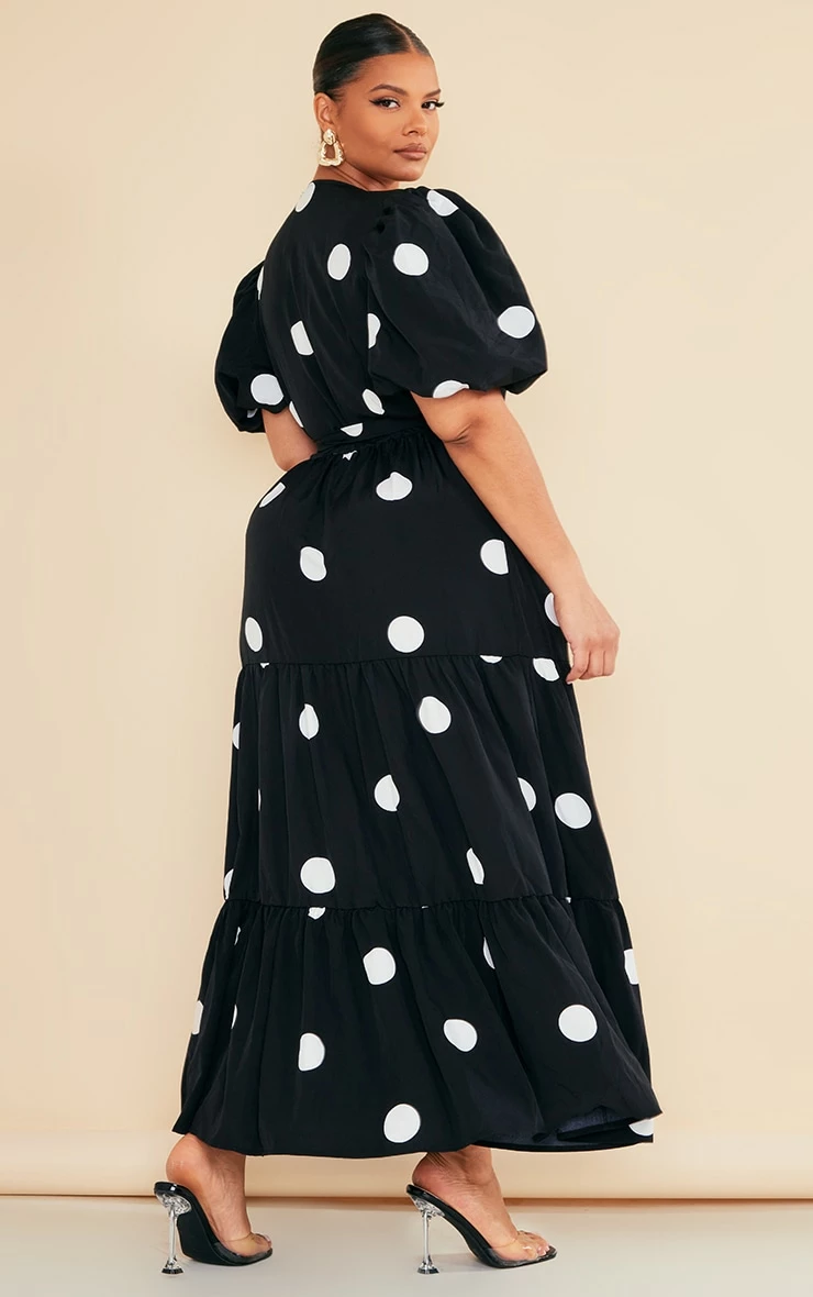 We are obsessing over this plus black printed tiered tie waist maxi dress for your new season wardrobe. This dress has a black hue with a printed tiered design, we are seriously obsessed. With a tie waist, this dress has a flattering fit you wont be able to resist. Team with some clear heels and some accessories of your choice to take your look to new heights.