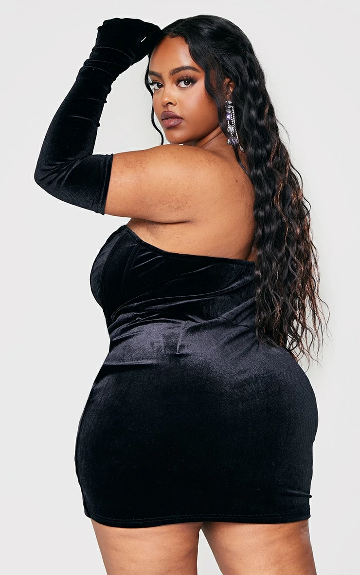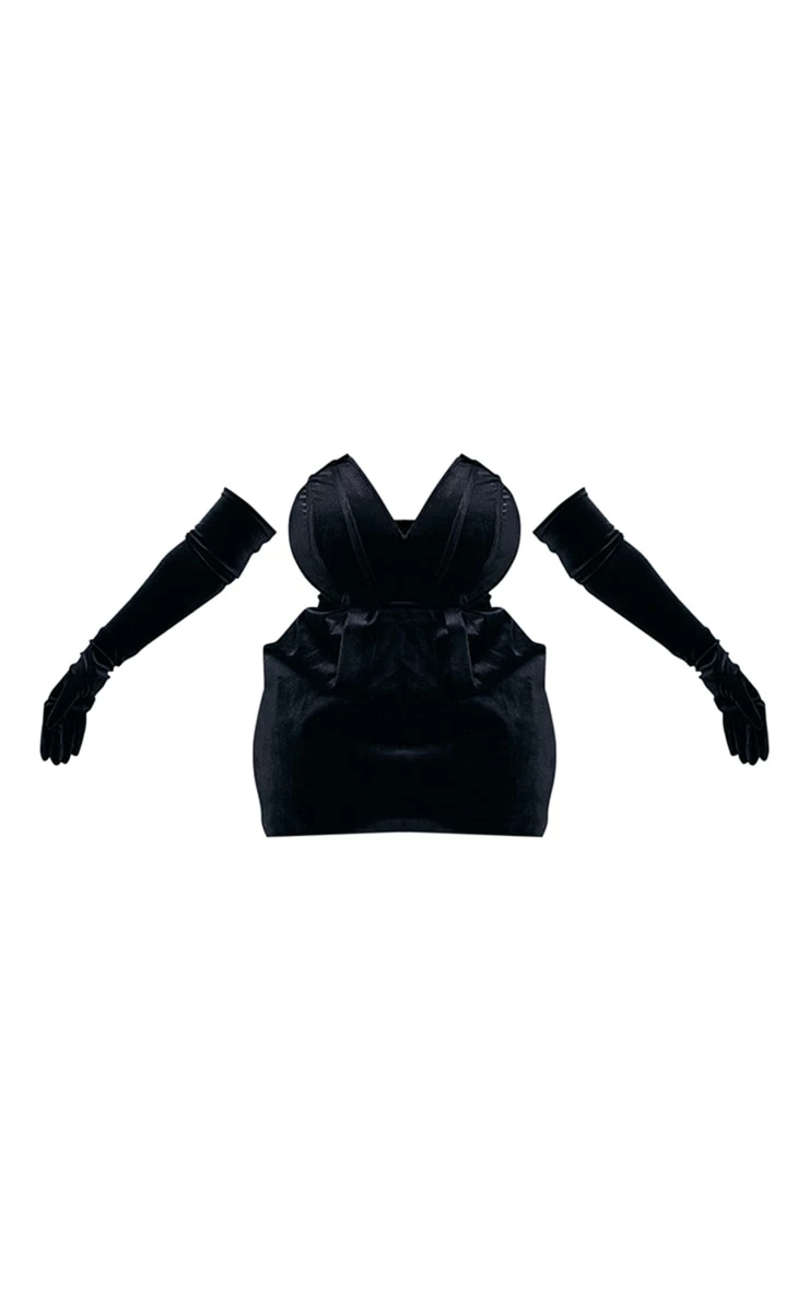 Take your weekend look to a whole new level with this dress doll. Featuring a black velvet material with a V bar design, glove detailing and a figure-flattering fit, how could you say no? Pair with your dreamy high heels and gold accessories for a glam finish.