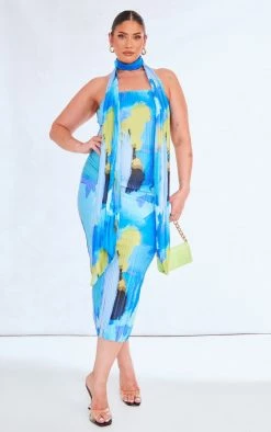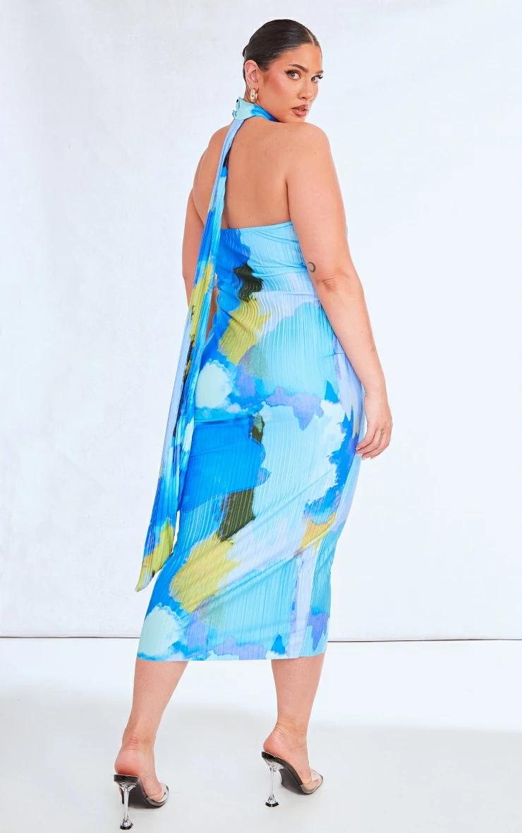 Be sure to turn heads in this plus blue abstract chocker plisse midi dress. Brought to you in a bold blue hue plisse material with an abstract print design, choker detailing for that extra touch of glam and a figure-flattering midi fit, how can you not fall in love? Style this midi dress with clear strap heels and statement accessories for a weekend-worthy look to be remembered.