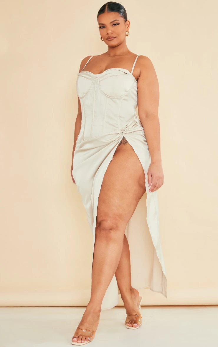 Got a special occasion penciled into your diary? Well we’ve got you covered with this plus champagne satin drape bust midi dress doll. This dress is made from a champagne satin material with a drape bust, a side split design and a midaxi length. This plus women’s dress is the perfect staple piece for your weekend wardrobe doll. For a look that will secure you all the likes team it effortlessly with a pair of clear high heels and statement accessories. It’s a yes from us.