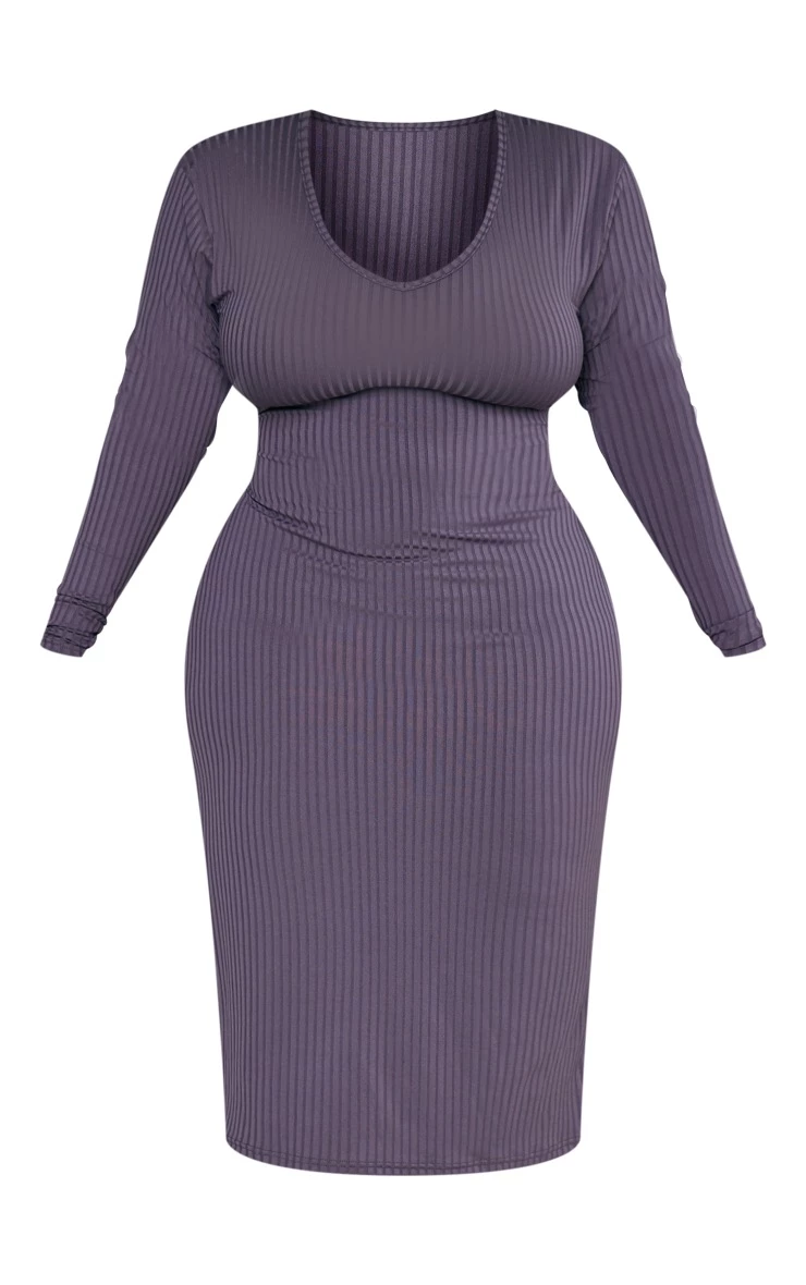 Get ready to have all eyes on you this season with this staple midi dress. Featuring a charcoal rib material with a scoop neck, long sleeves and a flattering fit, we are in love. Wear with heeled boots, accessories and a shoulder bag for a head-turning combo.