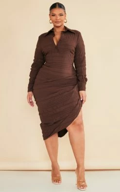 This plus chocolate textured ruched side midi shirt dress is sure to be the answer to all your weekend styling dilemmas doll. It is made with a chocolate hue textured material with a ruched side design and a midi length, how could you not be in love? Wear with clear slip-on heels and gold hoop earrings for a look that is perfect for your next date night and beyond.