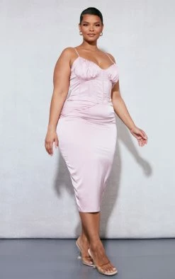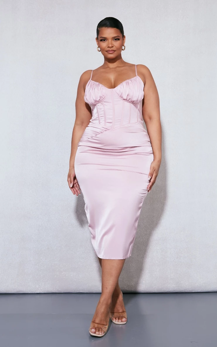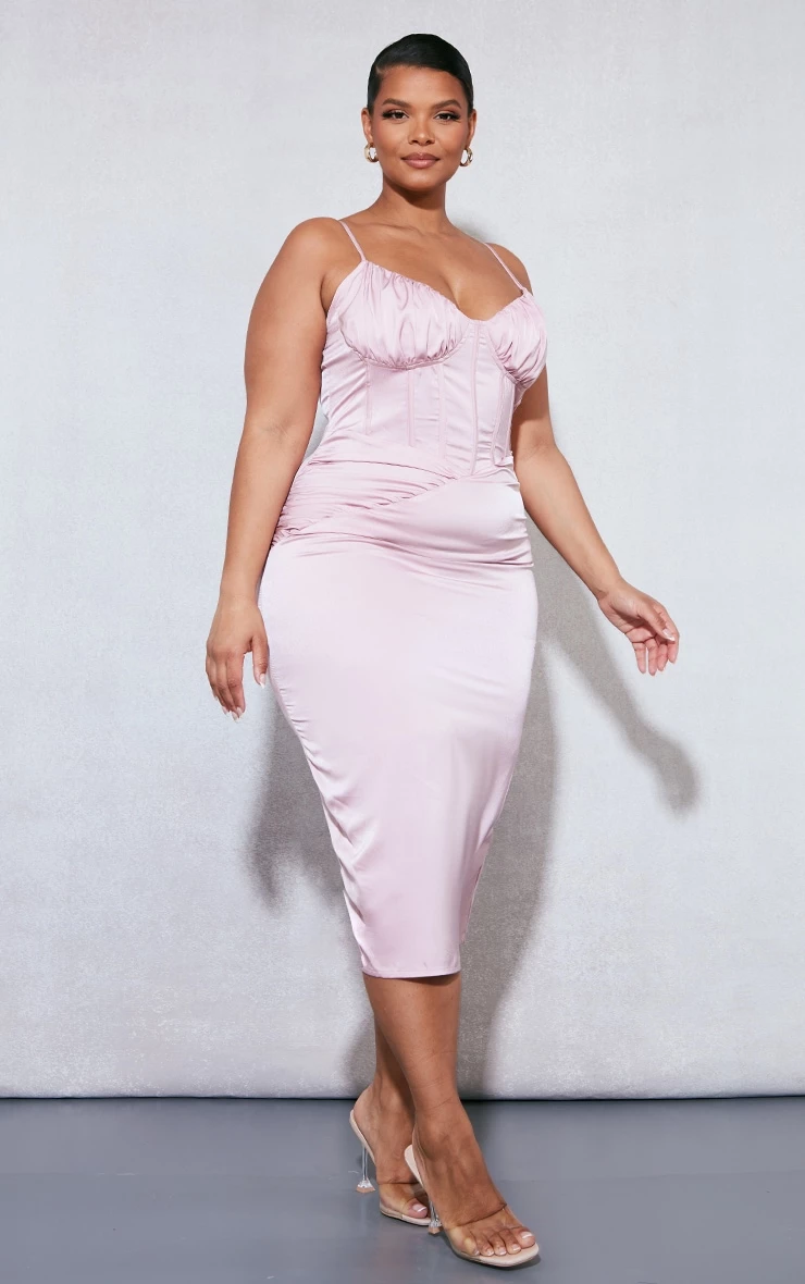 Looking for the perfect occasion ‘fit? Look no further than this plus dusty pink ruched bust satin midi dress. Made from a dreamy dusty pink hue satin material that’s giving us all the luxe feels and featuring a ruched bust design with a figure-worshipping midi fit, how can you not fall in love with this dress? Style with clear strap heels and statement accessories for a look that is sure to steal the stares.