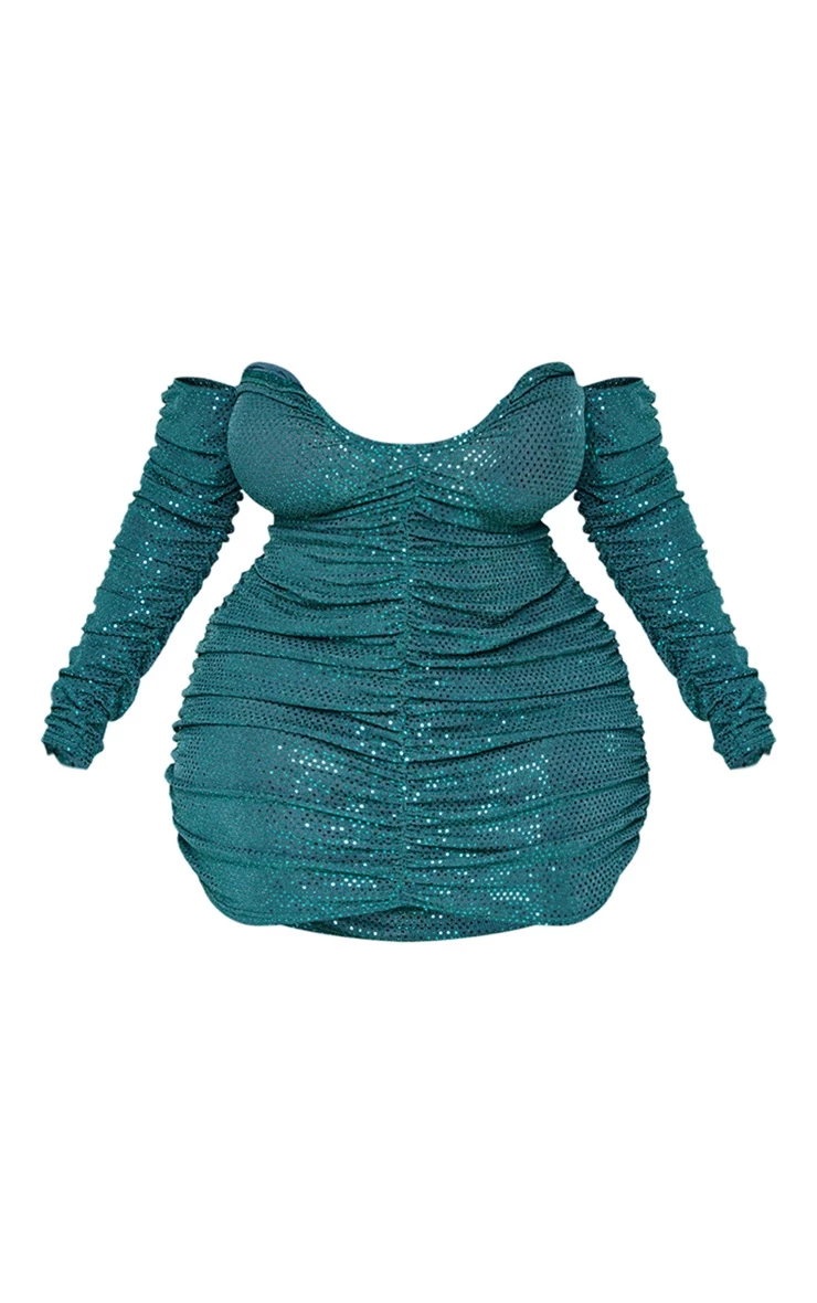 Get ready to have all eyes on you with this unreal bodycon dress. Featuring an emerald green sequin material with a bardot design, long sleeves and a bodycon fit, we are in love. Team with high heels, accessories and a mini bag for a look that won’t go unnoticed.