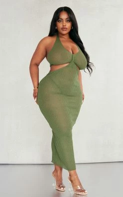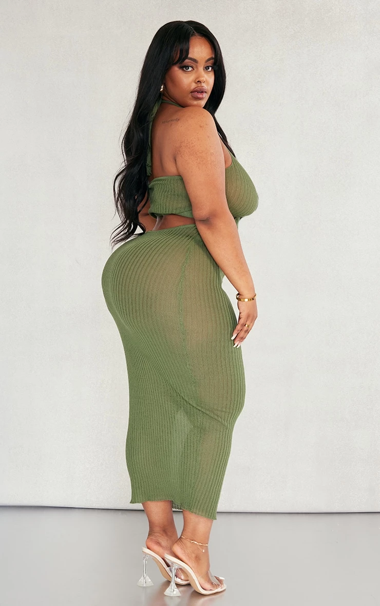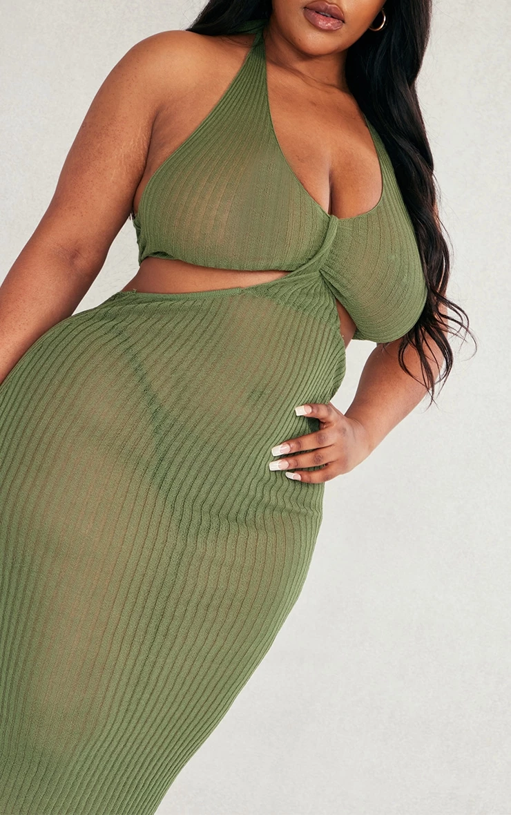 Add a little attitude to your new season wardrobe with this plus khaki sheer knit cross halter neck midi dress, it is perfect for all your weekend plans. With a khaki sheer knit material, a cross halter design and a midi length, you are sure to fall in love with this plus dress. Wear with your fave high heels, a clutch bag and your biggest hoop earrings for the ultimate glam finish.