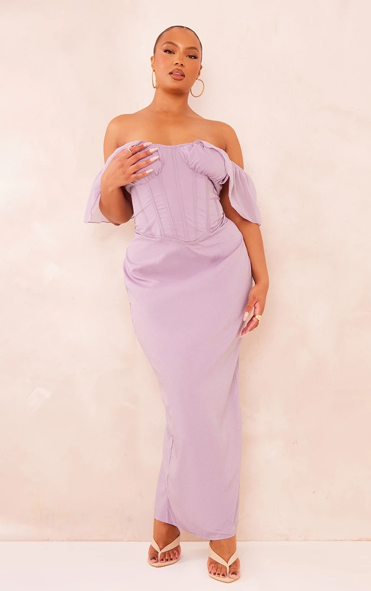 Bring all the luxe vibes to your occasion look with this plus lilac drape sleeve corset midaxi dress. Brought to you in a dreamy lilac hue material with a drape sleeve design a flattering corset fit and a figure-worshipping midaxi style, how can you not fall in love? Style this plus midaxi dress with heels and some glam accessories for a look that is sure to steal all the stares.