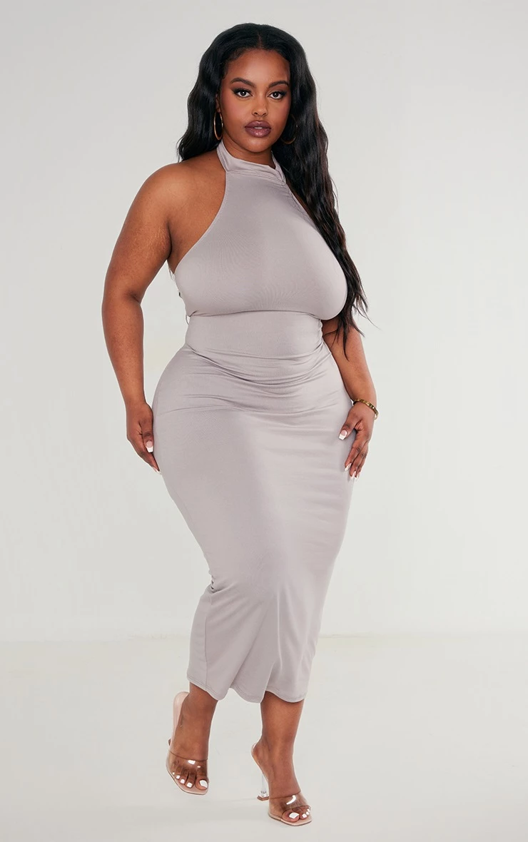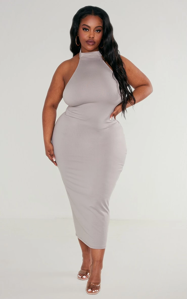 Give your weekend wardrobe a chic update with this plus mocha high neck soft touch midi dress. This plus midi dress is the perfect way to add some luxe vibes to your weekend plans. With a mocha soft touch material, a high neck and a sleeveless design, what’s not to love. Team with clear heels, simple accessories and a fiercely feminine attitude for a glam finish.