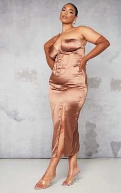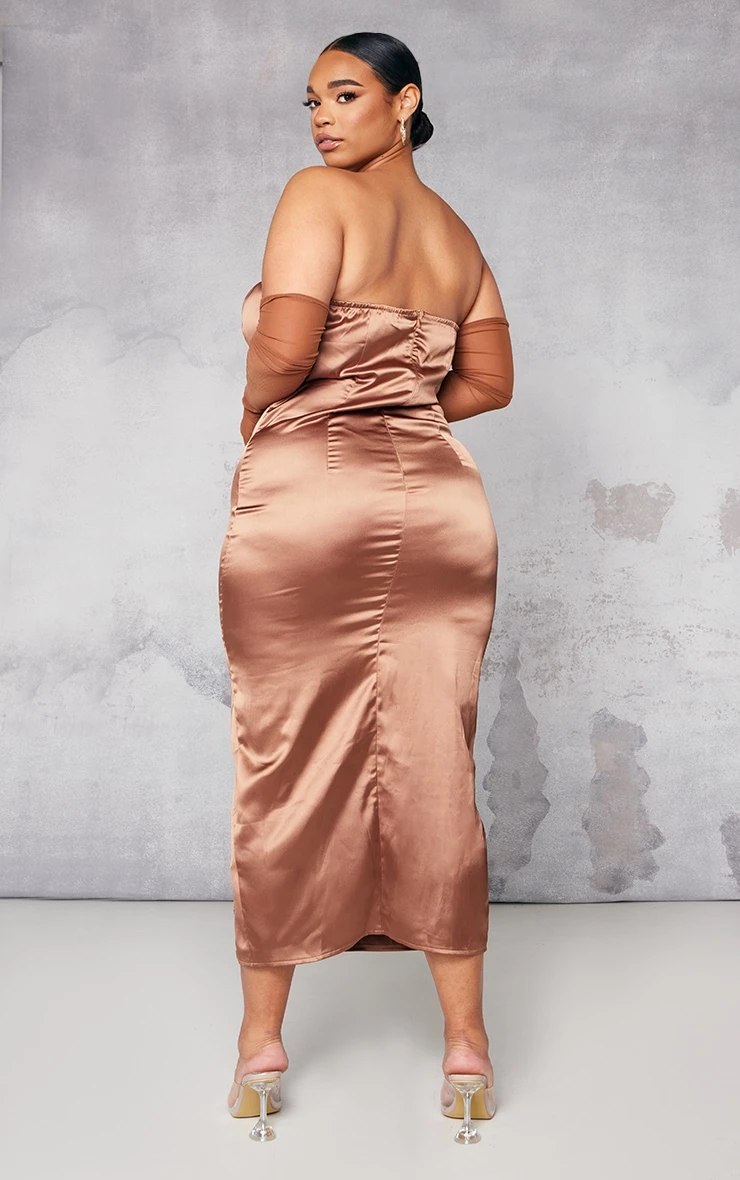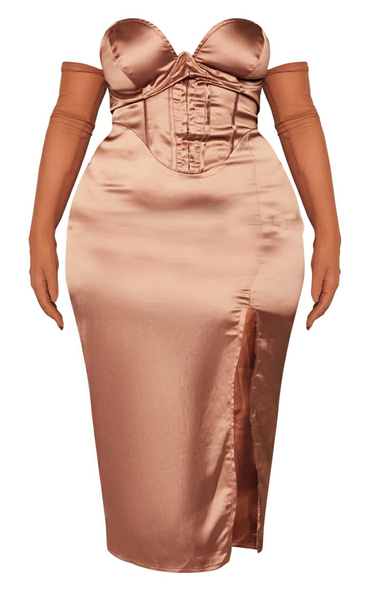 Got a special occasion coming up doll? Then this dress is sure to be at the top of your hit list. Featuring a mocha satin material with a structured corset design and a midi length. Wear with clear heels and gold hoop earrings for a look we can’t get enough of.