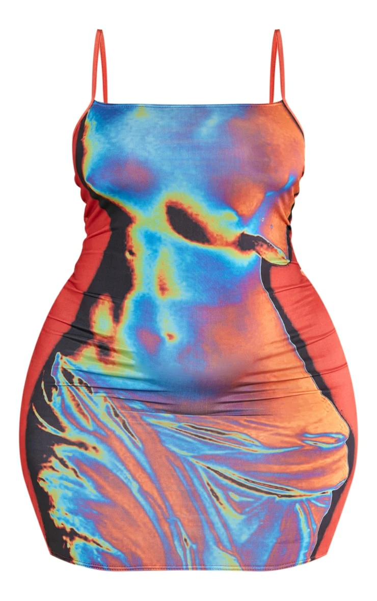 Stand out from the crowd in this plus multi heat body print strappy bodycon dress. Brought to you in a multi hue material with a statement body print design, thin straps and a figure-worshipping bodycon fit, what more could you ask for? Style this plus dress with tie up heels and gold accessories for a look that is sure to turn heads no matter what you weekend plans.