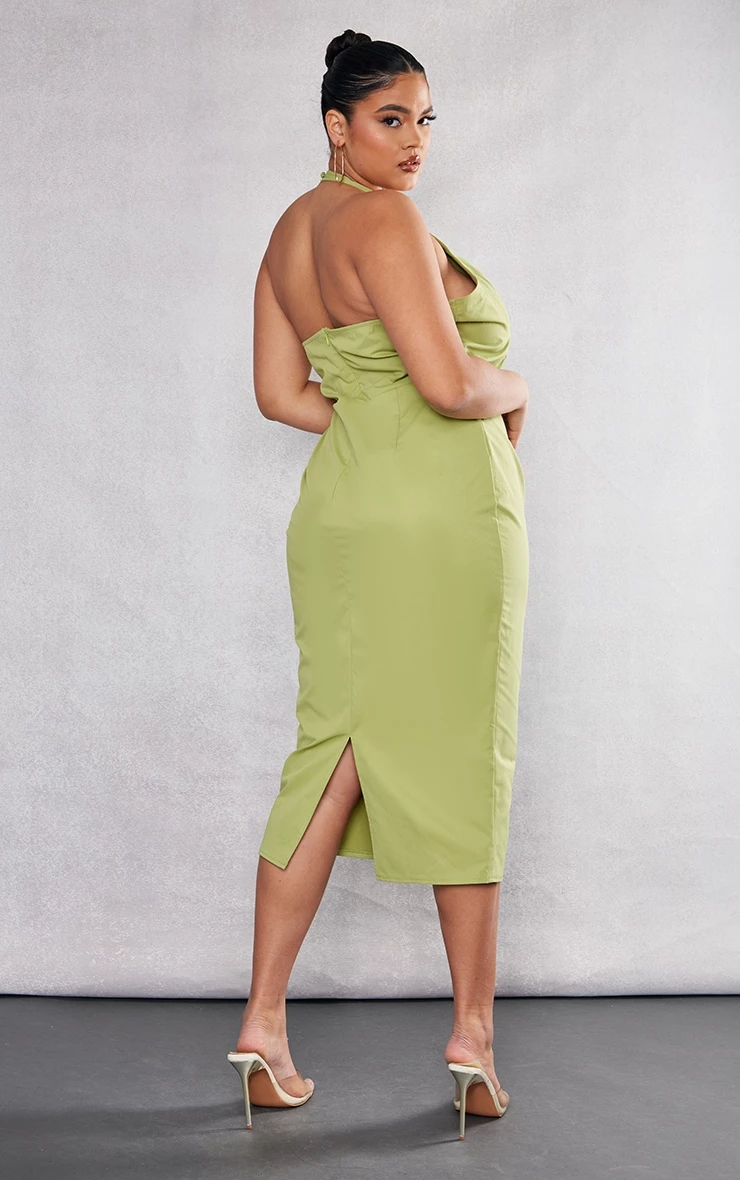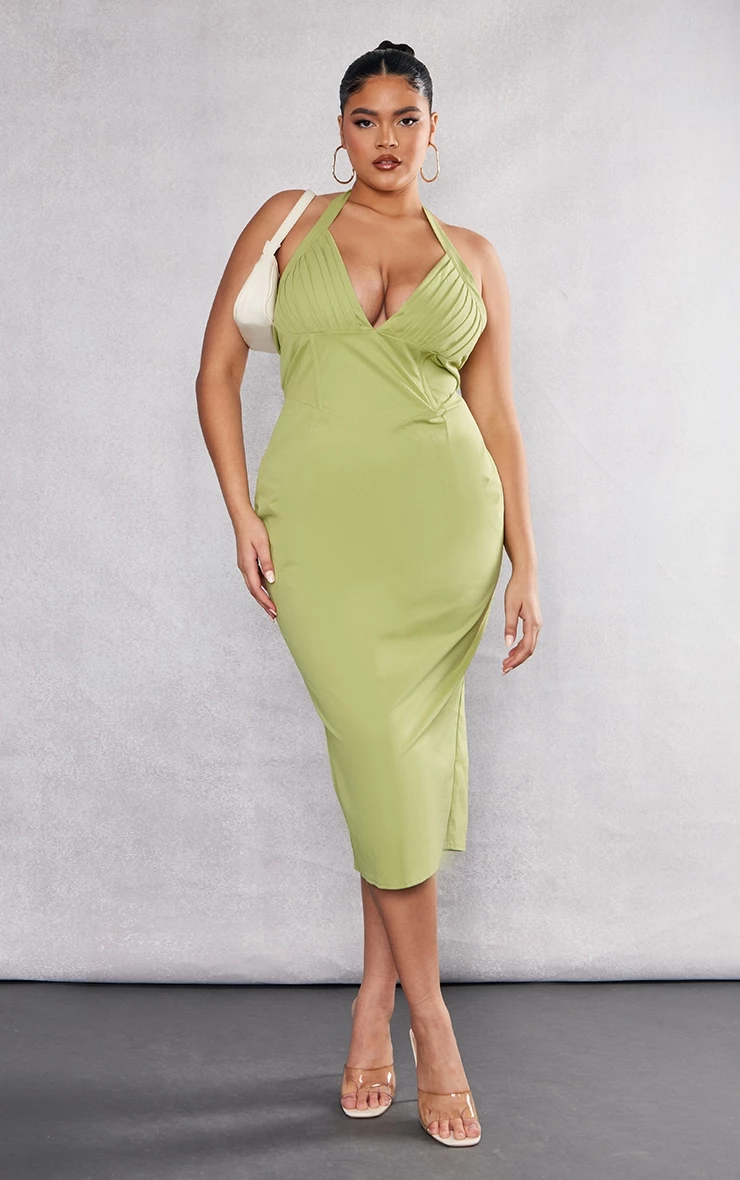 Take glam styling to a whole new level with this staple plus olive pleated bust midi dress doll. Made using an olive hue material with a pleated bust detailing and a figure-flattering fit that will enhance your unreal shape, what more could you ask for? It’s perfect for your next occasion. For a glam finish be sure to team with high heels, accessories, a shoulder bag and wear with confidence for a head turning look.