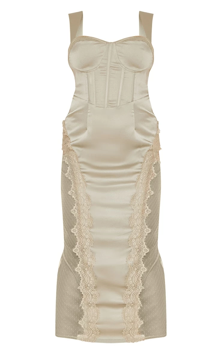 Got a special occasion pencilled into your diary? Then this plus sage green lace trim corset midi dress is sure to be the answer to all your what to wear dilemmas. Made using a sage green material with lace trim detailing and a corset style that is perfect for showing off your unreal shape, how could you not be in love? Style this plus midi dress with clear slip-on heels and your fave accessories for a look we just can’t get enough of.
