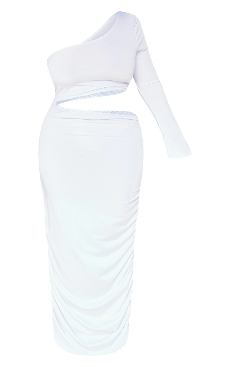 Make them do a double-take this season with this staple midi dress. Featuring a white slinky material with a one-shoulder style, a cut out design and a flattering fit, we are in love. Team with high heels, accessories and a mini bag to complete.