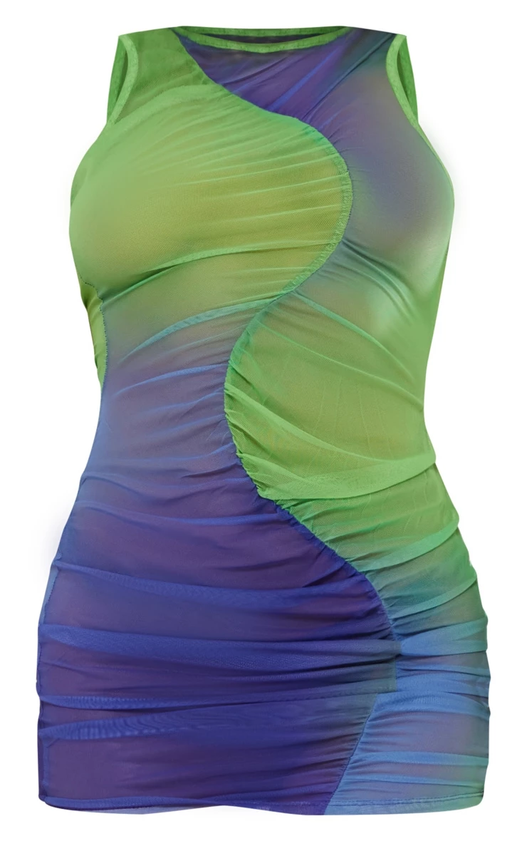 Get ready to make them stop and stare in this statement purple ombre print mesh asymmetric ruched bodycon dress. This dress is brought to you in a purple ombre mesh print material with an asymmetric design and ruched detailing, how could you say no? Whether it’s a date night with the dolls or a night with your significant other this dress is calling your name. Style with your clear high heels and accessories for a glam finish.