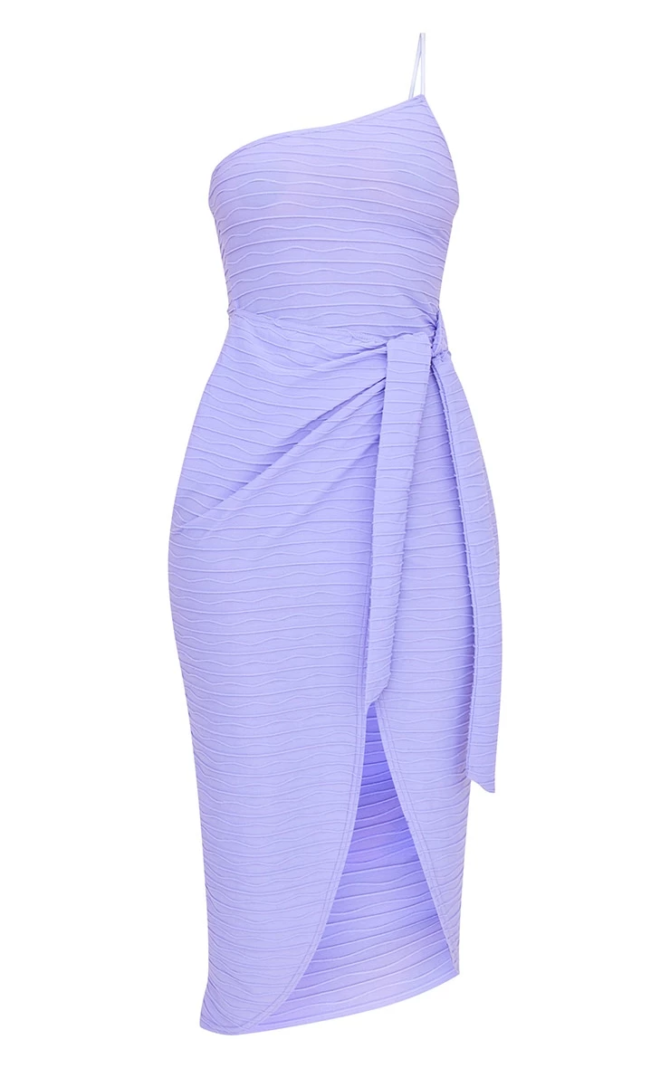Give your look a chic touch with this midi dress. Featuring a purple textured material with a one-shoulder strap design and a flattering fit. Team this with heeled mules and a shoulder bag to complete the look.